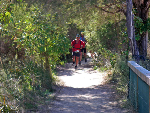 いよいよスタート!250名が横一線になって走り出します。いくつかの水場を超えて(膝までビショビショ)、次のTonga Beachまではちょっとした丘を越えて走ります。33kmのコース・レコードタイムは男性で2時間22分、女性で2時間52分です。それほどの高低差が無い海沿いの整備されたトラックですので、トレイルラン・レースの中でもスピード・レース。でも、それはトップ集団の話です。みんなそれぞれ自分のペースで楽しんでいます。Graemeによると、自分のフルマラソンのタイムぐらいが目安かな、とのことでした。「ちゃんとトレーニングしてから来いよ。」とも言っていましたけれど。